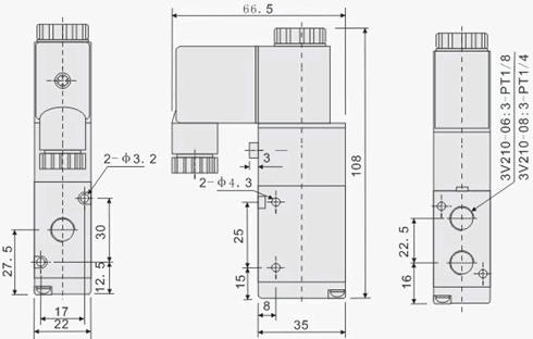 型 号 | 3V210-06-NC | 3V210-06-NO | 3V210-08-NC | 3V210-08-NO |