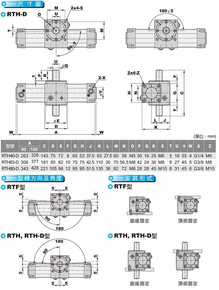 RTF80B-180D,气缸,SHAKO,新恭气缸,摆动气缸,旋转气缸