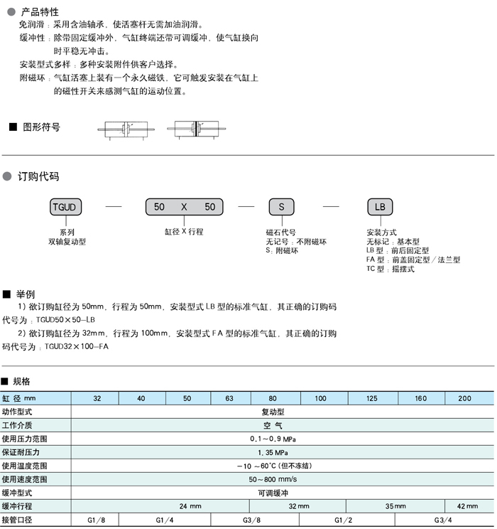 缓冲性:除带固定缓冲外,气缸终端还带可调缓冲,使气缸换向时平稳无冲击。