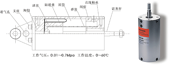 ·密封性好,不漏气, ·极低的摩擦力,运动平稳,无震动, ·灵敏度高,在很小压力变化时都会有响应, ·启动压力低,分离力小,