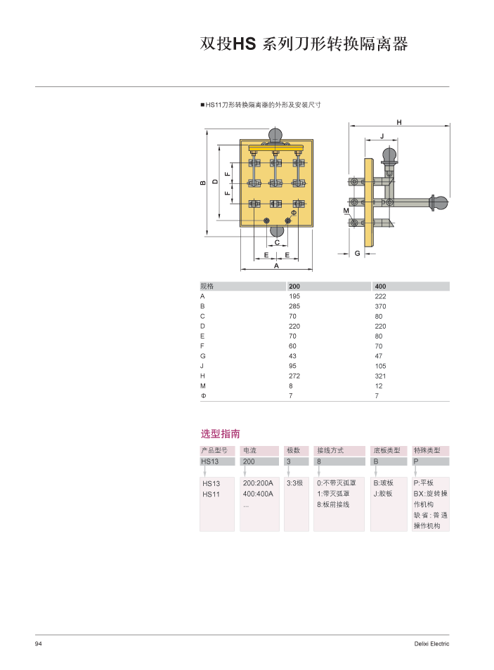 - 型号:HS系列刀形转换隔离器,配型选型开关容量,外形图片