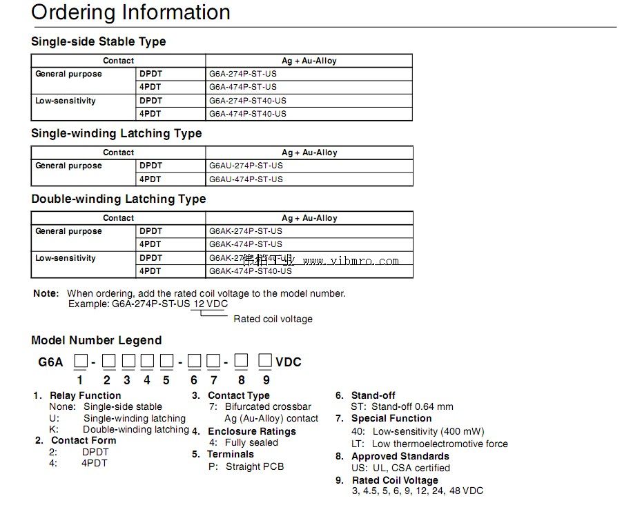 - 型号:G6A-234P-ST-US DC6,G6A 10
