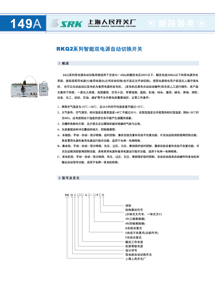 - 型号:RKQ2智能双电源自动切换开关,RKQ2-63S/