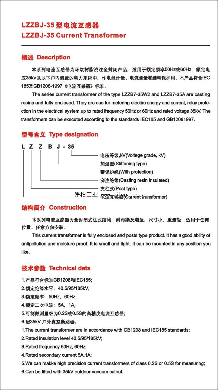 - 型号:LZZBJ-35,5000/5,0.5,型电流互感