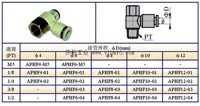 APHF4-01,AIRTAC接头,APHF串联肘
