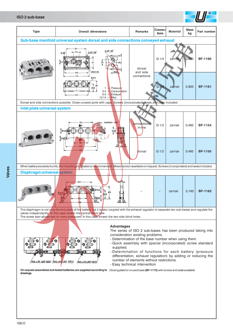 BF-1162,底座,底板,意大利UNIVER电磁阀底座